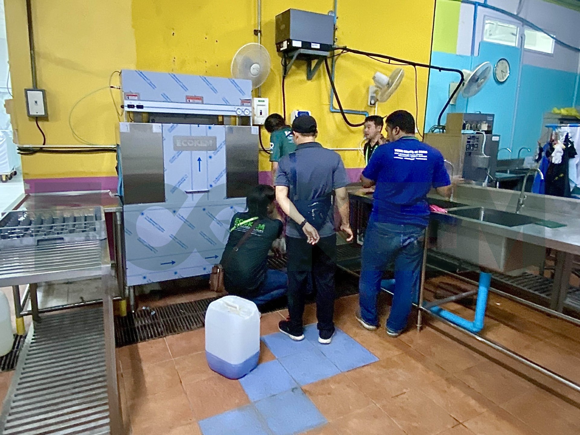 ติดตั้งเครื่องล้างจานพร้อมระบบจ่ายเคมีอัตโนมัติ